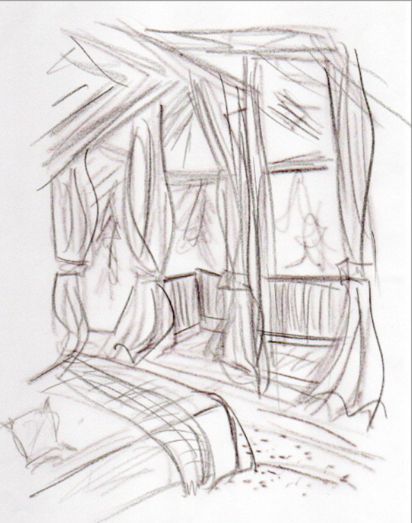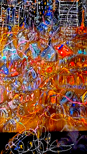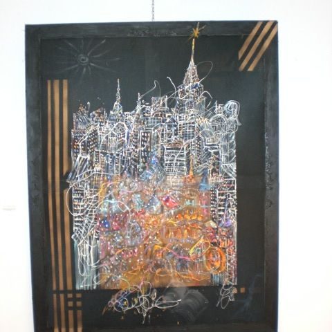 Ce travail est éléboré, comme les toiles précedantes de façon très personnetles, à savoir sur 3 toiles translucides.